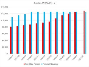 In practice, there are many people who already have a total State pension (including, for example, the State second pension) that exceeds their personal allowance. However, for the new State pension alone to surpass the personal allowance will be a milestone. Politically, it will be unfavourable, coming as it does after the Winter Fuel Payment controversy. To make matters worse, once the State pension exceeds the personal allowance, there is no going back unless the personal allowance is increased at a faster rate than price inflation.